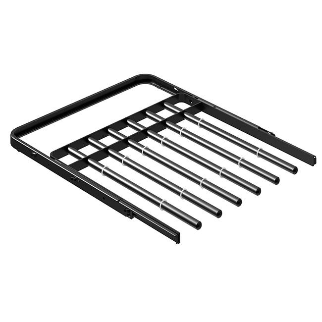 Брючница оснащена трубой диаметром 16 мм, рассчитанной на 6 пар брюк, и легко устанавливается между двумя вертикальными стойками на кронштейны глубиной 435 мм — без использования инструментов.