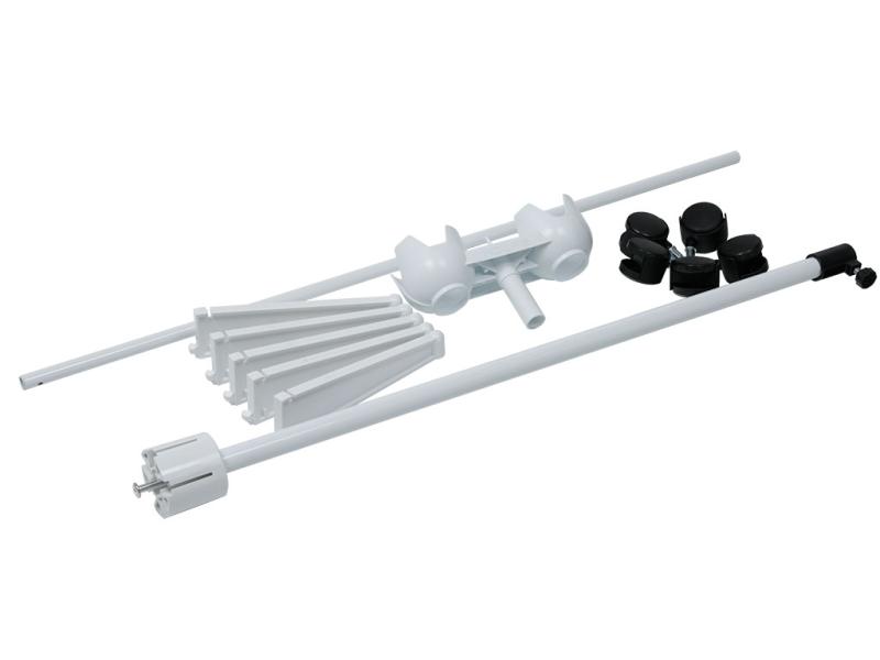 - Стойка выполнена из стальной трубы Ø16*1,5 мм, Ø25*1,5 мм и окрашена порошковой полиэфирной краской. Флаконодержатель выполнен из пластика белого цвета. Лучи основания выполнены из полиамида. Основание сборно-разборное